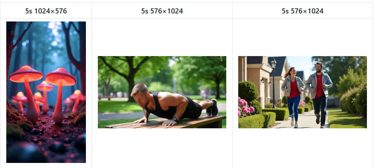 The model handles variable resolutions—from 256px to 768px—and supports multiple aspect ratios, including 16:9 (landscape), 9:16 (vertical mobile), 1:1 (square), and cinematic 2.39:1. Video lengths range from 2 to 16 seconds, with frame counts following the 4k+1 pattern (e.g., 17, 33, 65 frames), optimized for smooth motion under the rectified flow framework.